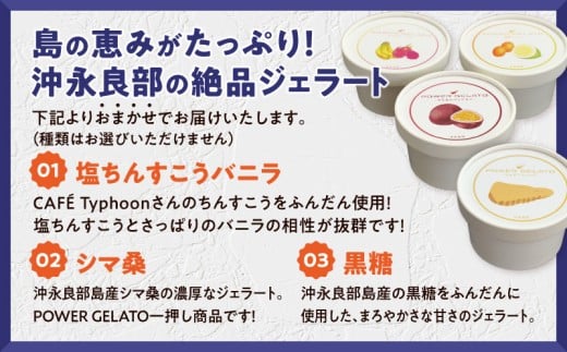 ジェラート 菓子 お菓子 デザート スイーツ 塩ちんすこうバニラ シマ桑 黒糖 ドラゴンバナナ マスカルパッション マスカルグァバ 金柑レモン いずれか3種 おまかせ セット 島素材 こだわり製法 手づくり SDGs 冷凍 美味しい おいしい ご褒美 おやつ POWER GELATO ふるさと納税 鹿児島 知名町 おすすめ ランキング プレゼント ギフト