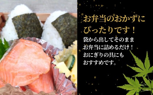一口サイズにカットしたサーモンを、ふっくらと美味しく焼き上げて真空パックしました。