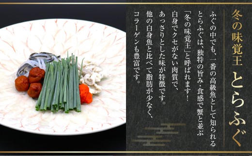 ふぐの中でも、一番の高級魚として知られる『とらふぐ』は、独特の旨みと食感で蟹と並び「冬の味覚王」と呼ばれています。