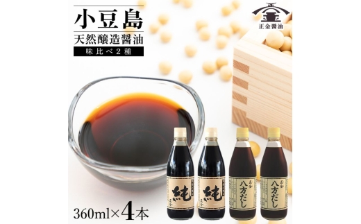 小豆島 桶(こが)仕込 天然醸造 正金醤油 桶仕込濃口 純・八方だしセット 360ml 各2本 計4本入
