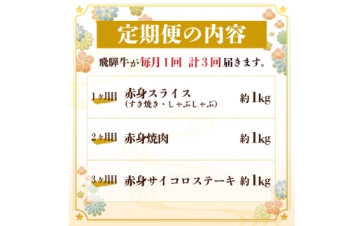 <毎月定期便>飛騨牛 赤身肉定期便 計3kg全3回【4059529】