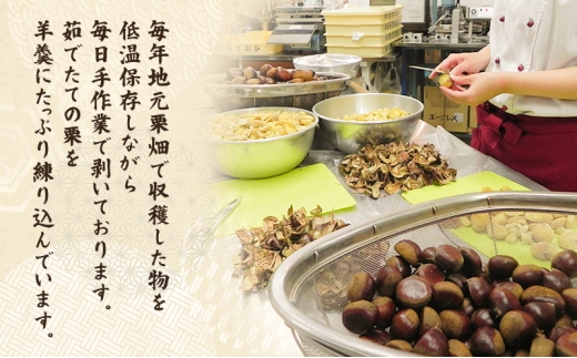手作業で丁寧に皮を剥いた茹栗を、羊羹の生地にふんだんに練り込み、じっくり蒸し上げました。