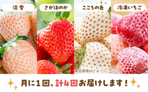 【4回定期便】岸川農園の自慢の赤白いちご(淡雪・さがほのか・こころの色・冷凍いちご) 【岸川農園】 [IAP046]