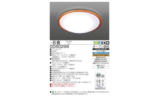 - 【瀧住電機工業株式会社】~8畳用 調光 調色 高効率 リモコンシーリングライト GD80299 リモコンスイッチ 日本製 照明 簡単 便利 ライト インテリア 天井 リビング 寝室 ダイニング キッチン 台所 TAKIZUMI 瀧住電機工業