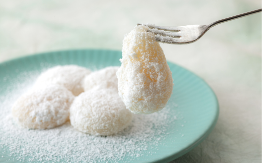 仕上げにココナッツパウダーをまとわせ、雪のような見た目とリッチな味わいに仕立てています。