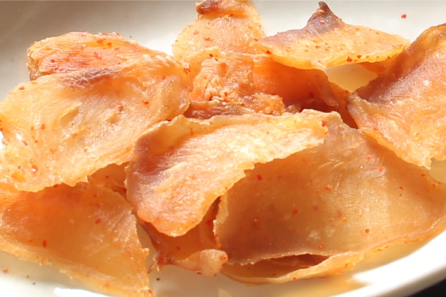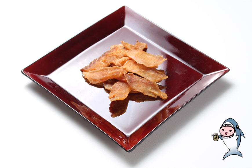 干したサメ肉を日本酒でほどよい柔らかさに戻した“半生食感”がおいしさのヒミツです。