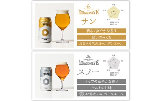 人気のオーガニックビール「ドラゴンアイ」シリーズ、4種類(スカイ・マグマ・サン・スノー)が詰合せになったセットです。
