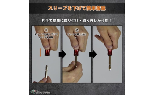 ビットの着脱は引き下げ式で、片手で簡単に取り付け・取り外しができます。