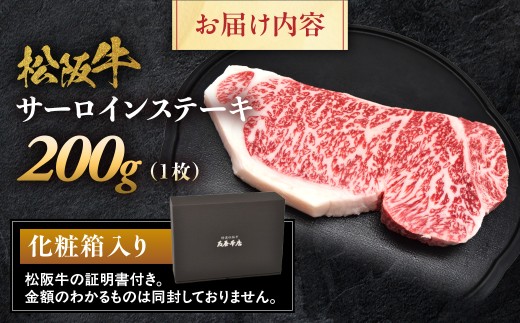 - 松阪牛 サーロインステーキ 200g 1枚 極上の柔らかさ 化粧箱入り 柔らかい 松坂牛 松阪肉 霜降り 高級ブランド牛 ロース サーロイン ステーキ ビフテキ 焼肉 自宅用 贈答品 化粧箱 ギフト お歳暮 牛肉 とろける 和牛 三重県 A4 A5 特産松阪牛 NTY-03