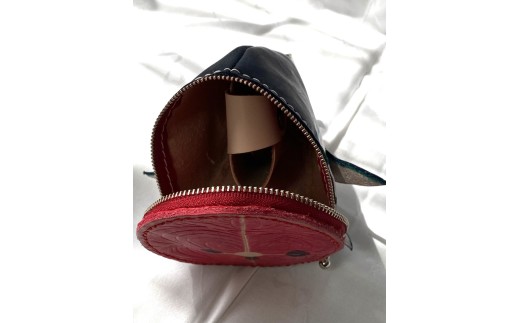 【説明】カツオのかしら型立体財布です。カードも20枚入ります。お札は折りたたまずそのまま収納できます。ベルトはポシェット仕様と手持ち仕様の2種類つけさせていただいておりますのでその日の気分で!可愛らしくインパクトがある革財布です。