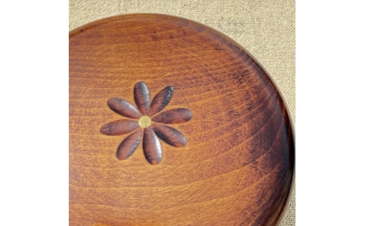 小型のかわいい菓子器です。シンプルな花彫柄です。お菓子やスイーツ、料理の保存、あるいはおむすび弁当箱としてもお使いいただけます。小物入れとしてもいかがでしょうか?栃の木をくり抜き、スリ漆で仕上げました。