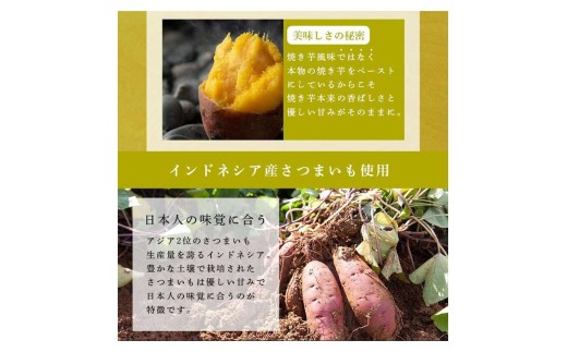 あえて粉末ではなく、本物の焼き芋ペーストを使用しているため、焼き芋の香ばしさや優しい甘みを実現しており、食物繊維を取ることもできます。