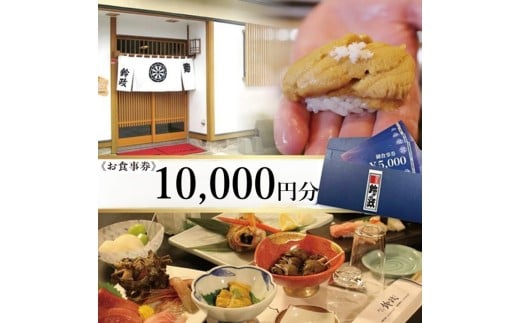 寿司・割烹 鈴政で使用できるお食事券10,000円分(5,000円×2枚) |