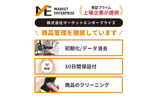 専門スタッフが徹底したデータ消去&初期化!クリーニングも行い、すぐに使用できる状態です。