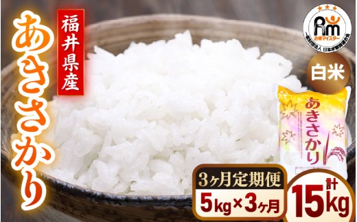 - 【新米】令和7年産 米 定期便3ヶ月 あきさかり 精米 5kg × 3回(計15kg)福井県産【白米 5キロ 15キロ アキサカリ お米 ごはん 人気品種 産地直送 新生活 kome】 [e66-d001]