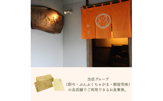 当店グループ(即今・ぶんぶくちゃがま・朝皆笑味)の各店舗でご利用できるプレミアムお食事券。