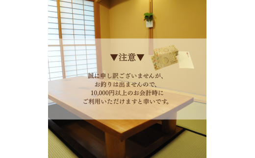 誠に申し訳ございませんが、お釣りは出ませんので、10,000円以上のお会計時にご利用いただけますと幸いです。