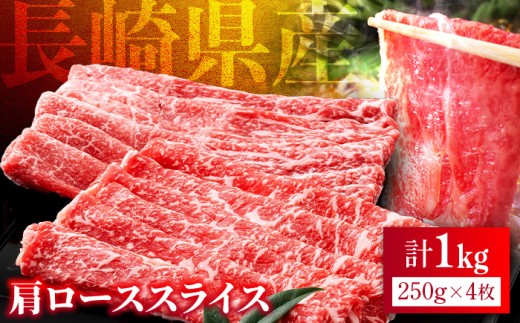 - 長崎県産牛 肩ローススライス すき焼き 1kg (250g×4) 牛肉 冷凍【田中精肉店】 肩ローススライス すき焼き肉 すきやき すき焼き用牛肉 霜降り 国産牛 牛肉 しゃぶしゃぶ 長崎 九州 ギフト 贈答 B556
