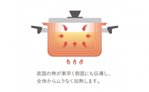ステンレスとアルミニウムの全面5層構造で「熱しやすく、冷めにくい」理想的な熱効率を実現。素材の栄養をまるごと摂れる無水調理や、余分な油は使わない無油調理で、野菜は甘くて色鮮やかに、お肉は柔らかくジューシーに仕上がります。長時間の煮込み料理に最適な両手鍋。安心の10年間長期保証付き。