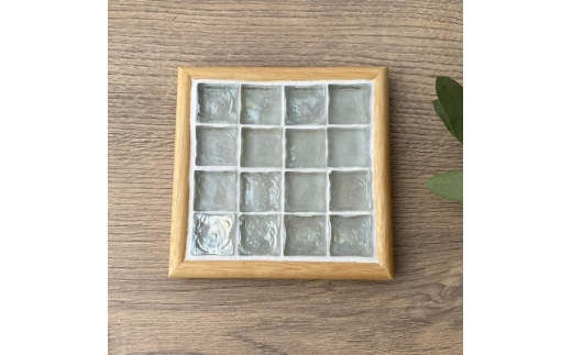 クリアカラーのガラスタイルが光りを受けて輝き、日常のティータイムやダイニングテーブルをおしゃれに彩ります。