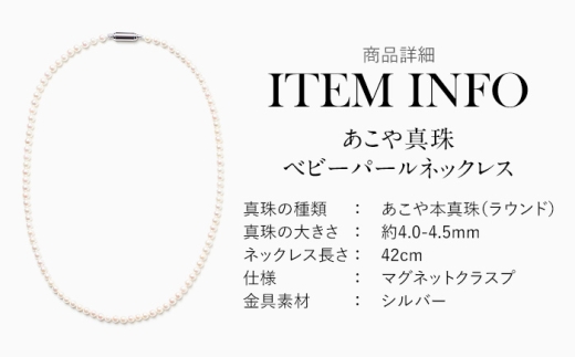 あこや真珠 ネックレス ベビーパール 4.0-4.5mm 保証書付 アコヤ真珠 パール レディース アクセサリー 長崎県/株式会社NINA [42AABY098]
