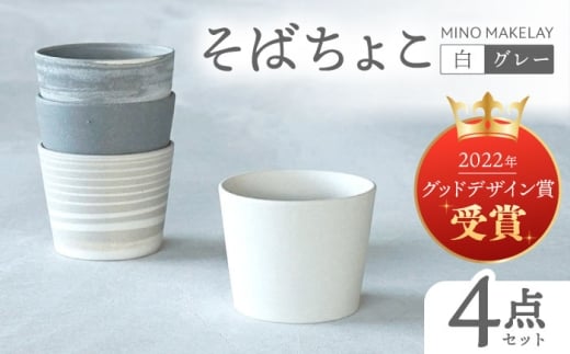 - 【美濃焼】[手作り at kiln MINO Ceramics Studio] MINOMAKELAY そばちょこ 4個セット 白/グレーセット 多治見市/井澤コーポレーション 食器 フリーカップ [TBP291]