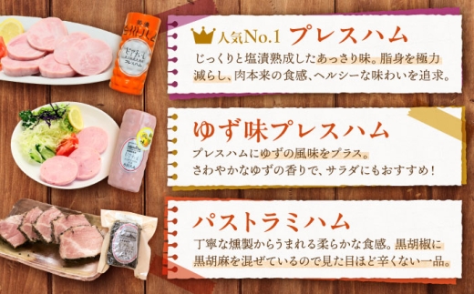 【通常発送】白川ハム 人気!3種セット( プレスハム ・ ゆず味プレスハム ・ パストラミハム ) ハム ボンレスハム プレスハム パストラミ 詰め合わせ 白川町 / 白川町農業開発 [AWAH015]