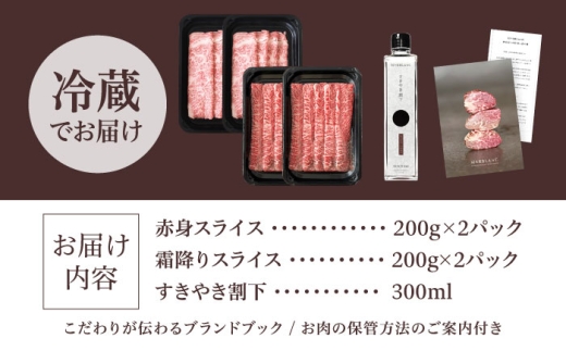 【旨味成分最大4倍】 熟成肉 黒毛和牛 すき焼き 食べ比べ ギフト セット 赤身スライス & 霜降りスライス 計800g(2種×各2パック)和牛専用すき焼き割下付き 大阪府高槻市/株式会社MARBLANC [AOAS031]