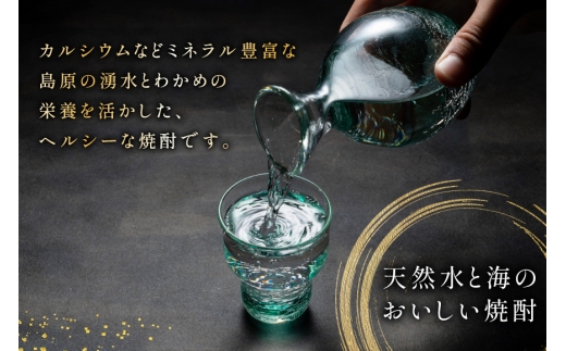 名水島原の天然水と海の栄養を豊富に含んだ、わかめから生まれたおいしい焼酎です。