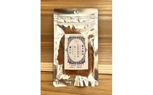 陸前高田市のブランド米、”たかたのゆめ”を使用して玄米麴及び黒麴を製造し、その麹のみで味付けしたチキンジャーキーです。