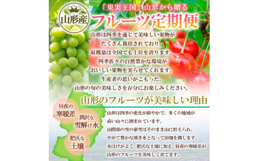 【山形連携中枢都市圏における共通返礼品です。関係市町(山形市、寒河江市、村山市、尾花沢市、山辺町、中山町、河北町、西川町、大石田町、又は大江町)で生産されたさくらんぼ、桃、シャインマスカット、ラ・フランス、りんごをお届けします。】