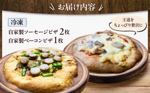 【 糸島 手づくり 】 ソーセージ 自家製 ベーコン チーズ お肉 ピザ 贅沢 3枚セット 糸島市 / わかまつ農園 [AHB060]