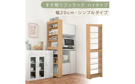 - 【国産家具】すき間ワゴンラック ハイタイプ〔幅20cm・シンプルタイプ〕(オーク)隙間収納 キッチン キャスター付き キッチンワゴン スリム 収納 すき間収納 ランドリー ラック 薄型 木製 KRA945195-0-OAK