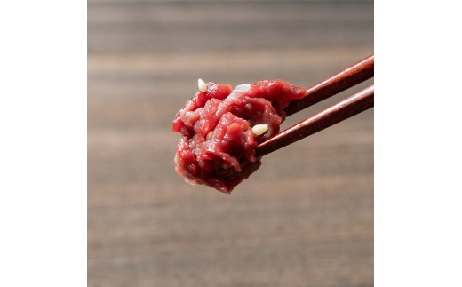 ・ユッケ:解凍して付属のタレを絡めるだけでお召し上がりいただけます。新鮮な馬肉だからこそ生でも安心して楽しめ、卵黄や刻みネギ、ゴマなどをのせるとさらに味わいが豊かになります。