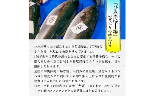 氷見産 天然寒ぶり 柵 2-3人前 約200g-300g 釣屋魚問屋直営 ひみ岸壁市場 富山県 氷見 氷見漁港 能登 寒ブリ 天然鰤 サク ひみ岸壁市場 天然 鮮魚 ブリ 産地直送