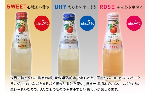 - ニッカ弘前 生シードル 200ml 3種6本セット(スイート・ドライ・ロゼ各 2本)