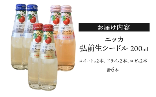 ニッカ弘前 生シードル 200ml 3種6本セット(スイート・ドライ・ロゼ各 2本)