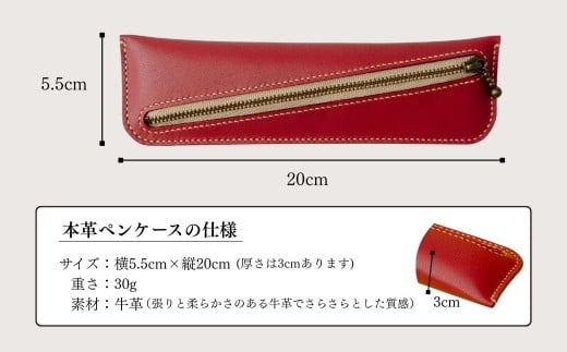 【思いやり型返礼品】本革ペンケース レッド | ペンケース 本革 牛革 レザー レザークラフト クラフト 手縫い 手作り 文房具 筆箱 文具 ステーショナリー ステイショナリー 地域活動支援センターあいろこいろ 埼玉県 狭山市
