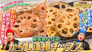 国産の蓮根を薄くスライスして、米油でカリっと揚げた野菜チップスです。オリジナルのからしれんこんフレーバーの味付けをしております。