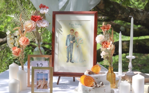 御嵩町出身・在住の作家が、水彩色鉛筆で丁寧に描く一点もの。幼い頃からこの町の自然や人に囲まれて育ち、絵を描くことが日常だった作家が、「ただ似ている」だけでなく、その人らしい空気感や温もりまでも表現します。