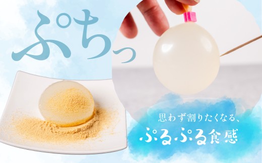 食べるときは、楊枝で水風船のようなパッケージをプチッと割るのが楽しいポイント。お子さまから大人まで、思わず笑顔になるユニークな和スイーツです。
