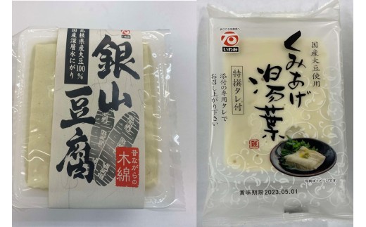 豆腐、湯葉(大豆) 油揚げ、厚揚げ(大豆、食用植物油)山芋とろろ豆腐(大豆、大和芋、長芋)