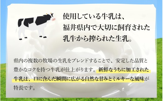 使用している牛乳は、福井県内で大切に飼育された乳牛から搾られた生乳。