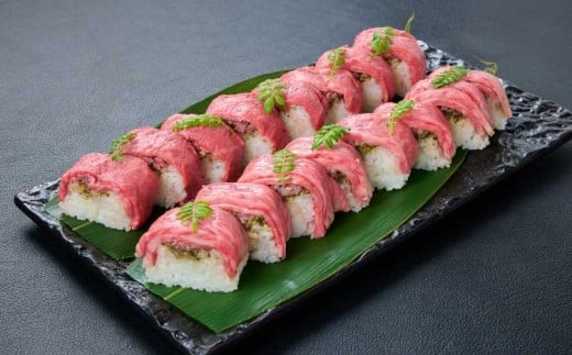 熊本県産のあか牛ともっちりとした県産米を使用した特製ローストビーフ寿司です。