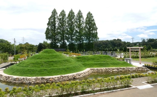 古墳の表層面の芝生の下に、納骨のための埋葬施設があり、1基の前方後円墳の中に、「永代祭祀墓」の区域と「合祀墓」の区域を備えています。