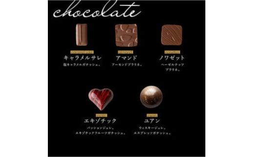 創業100年を越えるフランスのチョコレートメーカー、ヴァローナ社より最高位プラチナ認定を受けたシェフが、味のバランスや香り、食感など全ての要素をチョコレートを通して凝縮させて表現したオリジナリティー溢れるボンボンショコラ。
