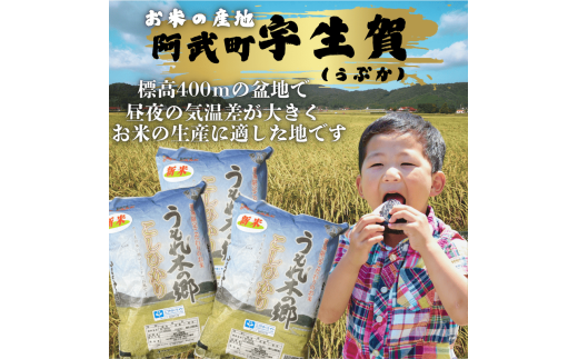 山口県阿武郡阿武町宇生賀地区、標高約400mの盆地で育った「うもれ木の郷」のこしひかりです。