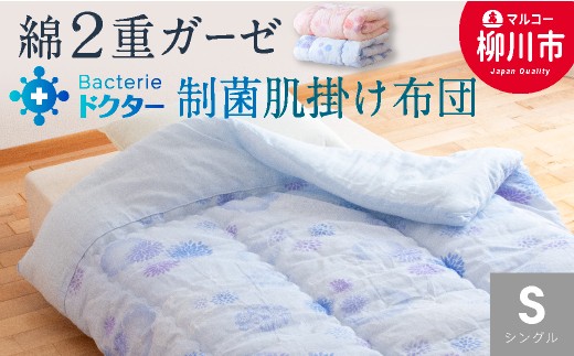 - 〈選べるカラー〉 夏用 肌掛け布団 綿 二重ガーゼ シングル (140cm × 190cm) (ブルー系 / ピンク系) 布団 ふとん フトン ケミタックシグマ 制菌わた 福岡県 柳川市