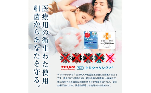 中わたには、帝人の高衛生制菌わた「ケミタックシグマ」を使用。