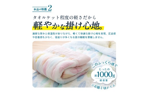 本品はタオルケットにはない「ほんのり保温力」が特長。